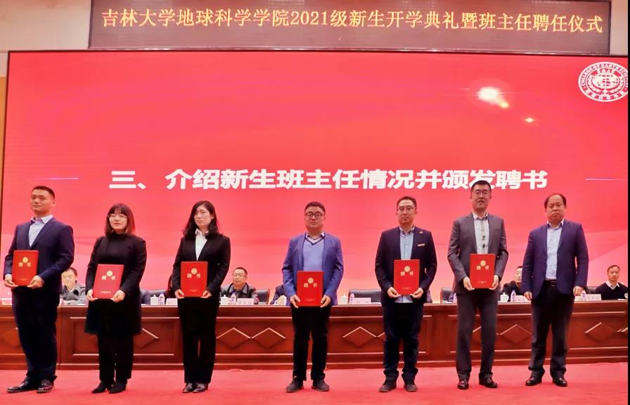 2021年10月19日晚,best365官方网站登录入口2021级本科新生开学典礼暨班主任聘任仪式于东荣大厦一楼报告厅顺利举行。学院党委书记杨洲、院长单玄龙、党委副书记马旭、副院长杨德彬、副院长柳蓉、副院长李伟民、副院长许中杰、副院长曲大为、副院长梁琛岳、地质学系主任董永胜、资源工程系主任杨言辰、国土资源系主任王冬艳、能源系主任唐华风出席了本次典礼。此外,参加此次典礼的还有学院优秀班主任代表、新生班主任、全体辅导员、2021级全体新生以及2020级学生代表。本次典礼由院党委副书记李阳主持。