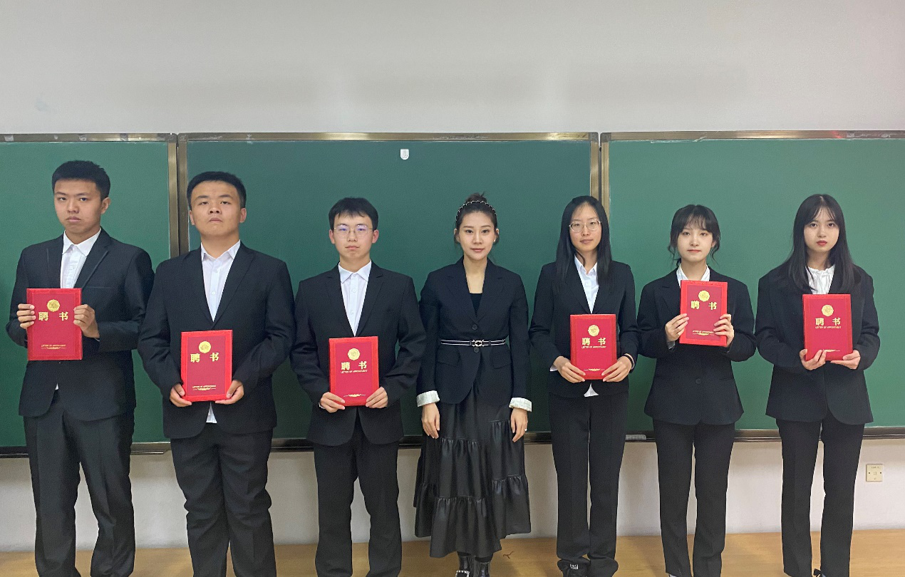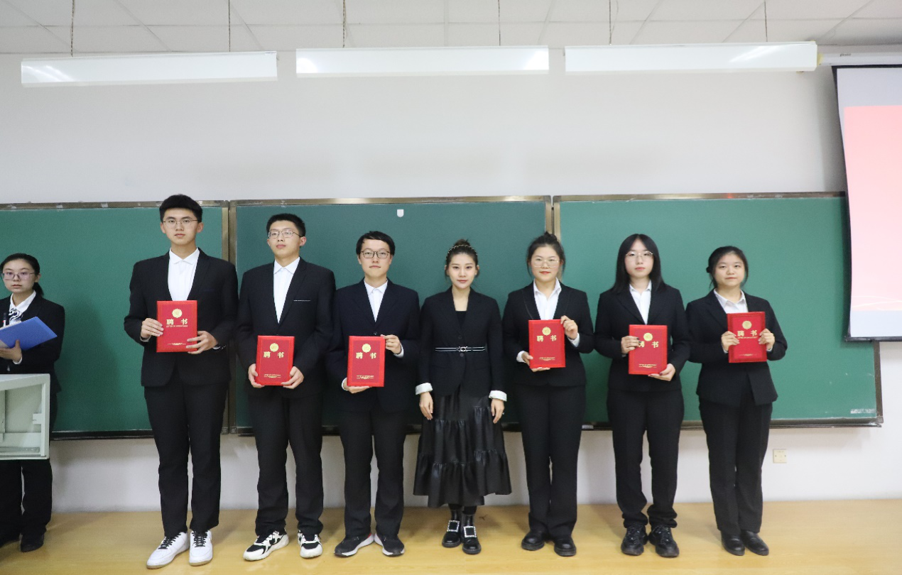 随后,团委书记兼2021级辅导员韩旭老师为各班班干部颁发聘书。