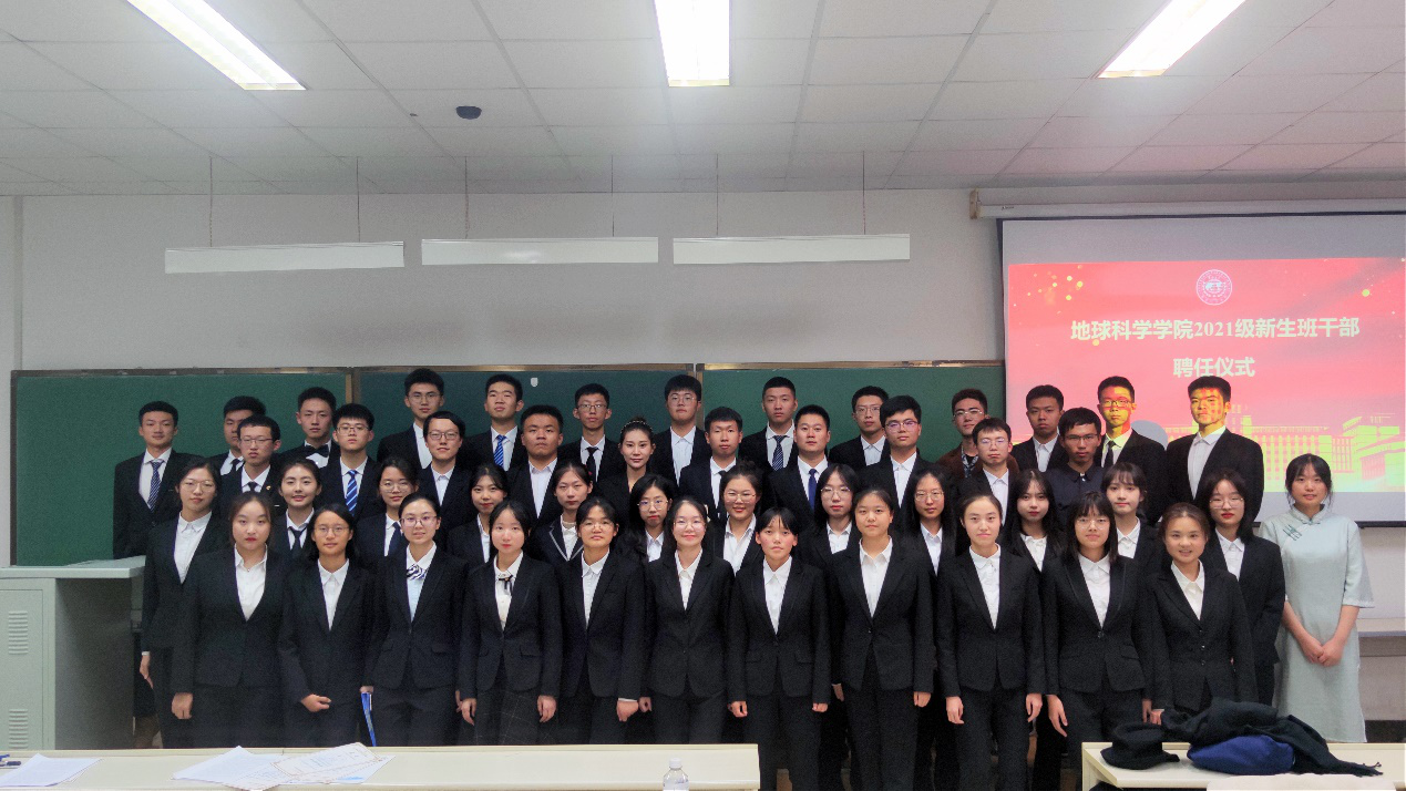 2021年10月31日晚,best365官方网站登录入口2021级本科新生班干部聘任仪式在李四光楼310教室顺利举行,参加仪式的有团委书记兼2021级辅导员韩旭老师、2020级辅导员助理以及2021级新任班干部。本次会议由姚欣欣同学主持。