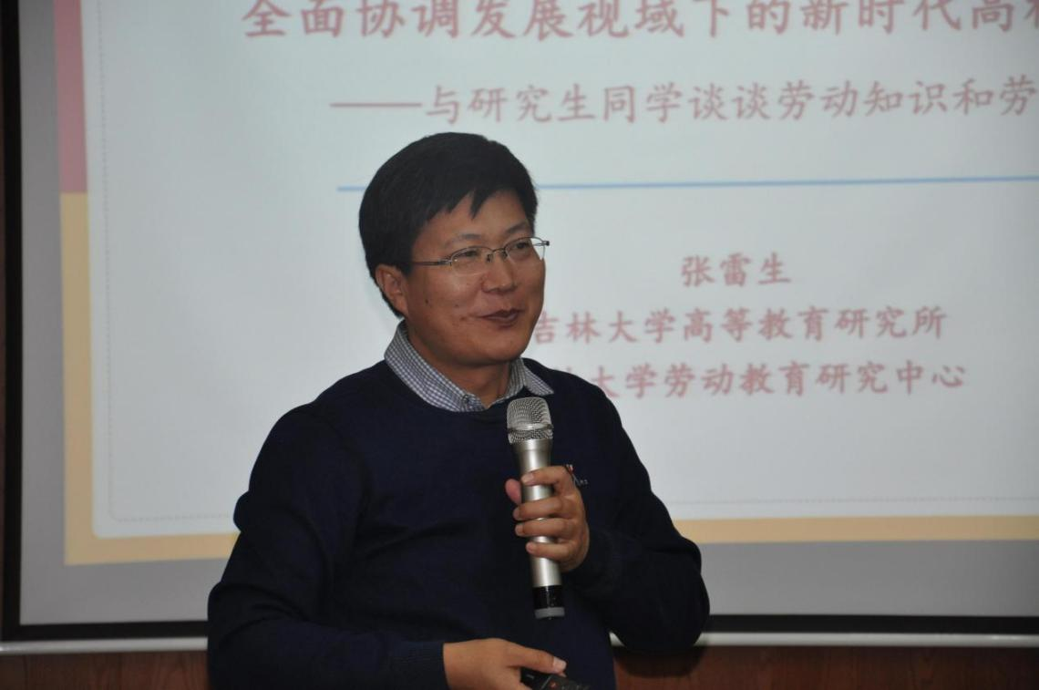 11月17日,best365官方网站登录入口马克思主义学院高等教育研究所副教授张雷生老师受邀来到鸽子楼,以“全面协调发展视域下的新时代高校劳动教育”为题,为学院98名研究生新同学讲授了一堂接地气、有新意的劳动教育讲座。学院党委副书记马旭参加本次活动,活动由院研究生辅导员郑岩主持。