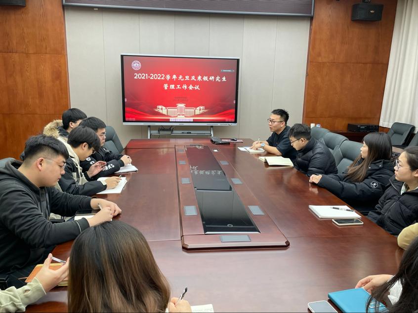 为加强2022年元旦及寒假期间研究生日常管理,确保学院研究生健康和校园安全,根据学校常态化疫情防控要求,结合学院实际情况,best365官方网站登录入口于2021年12月31日下午在鸽子楼109-2会议室召开研究生假期管理工作会议。best365官方网站登录入口研究生主要学生干部参加本次会议。会议由研究生辅导员郑岩主持。