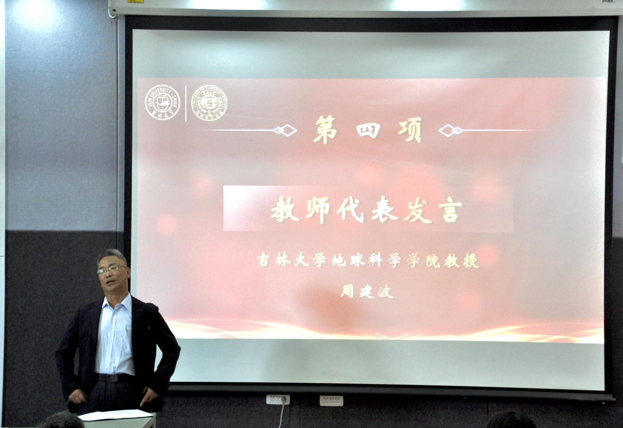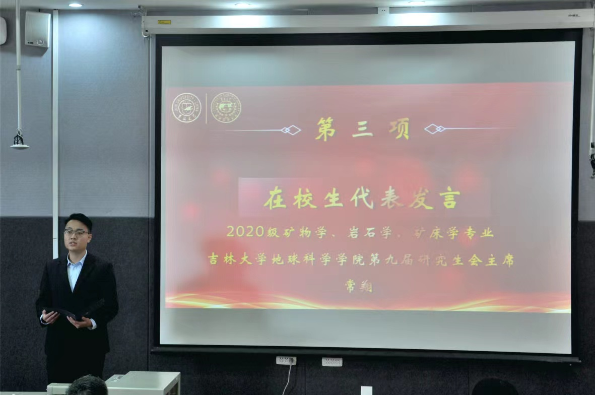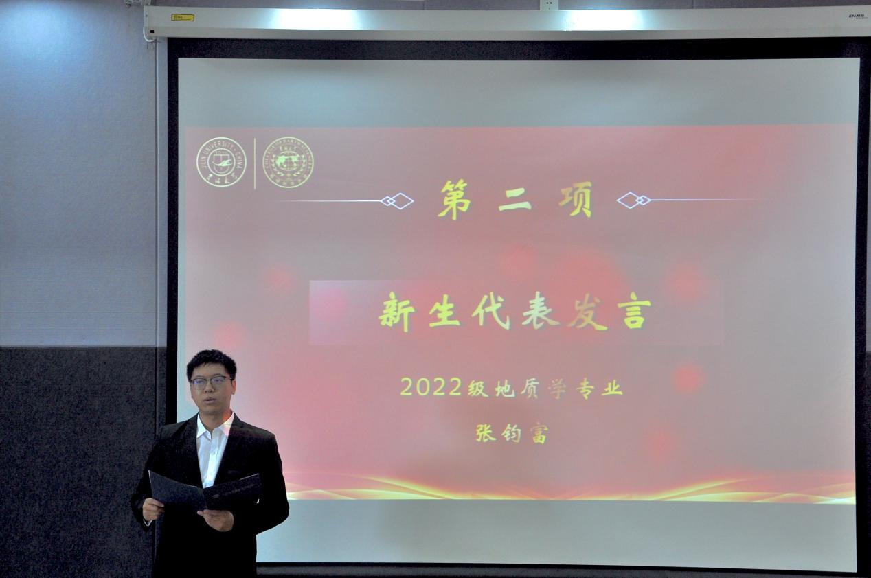 典礼上,2022级地质学专业张钧富和2020级矿物学、矿床学、岩石学专业常翔分别代表新生和在校生进行发言。希望同学们能够谨记“求实创新,励志图强”的吉大校训,发扬“吃苦耐劳、勇攀高峰”的地学精神,勇做新时代敢想敢拼的“后浪”,实现人生价值。