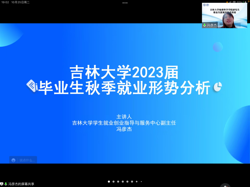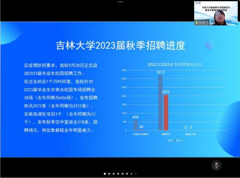 10月25日,学院邀请学校学生就业创业指导与服务中心副主任冯彦杰老师,以“best365官方网站登录入口2023届毕业生秋季就业形式分析”为题,为学院157名研究生新生线上讲授了一场以就业数据分析为基础,案例分析为辅导,实战经验丰富的职业生涯规划教育讲座。本次活动由学院党委副书记马旭主持。