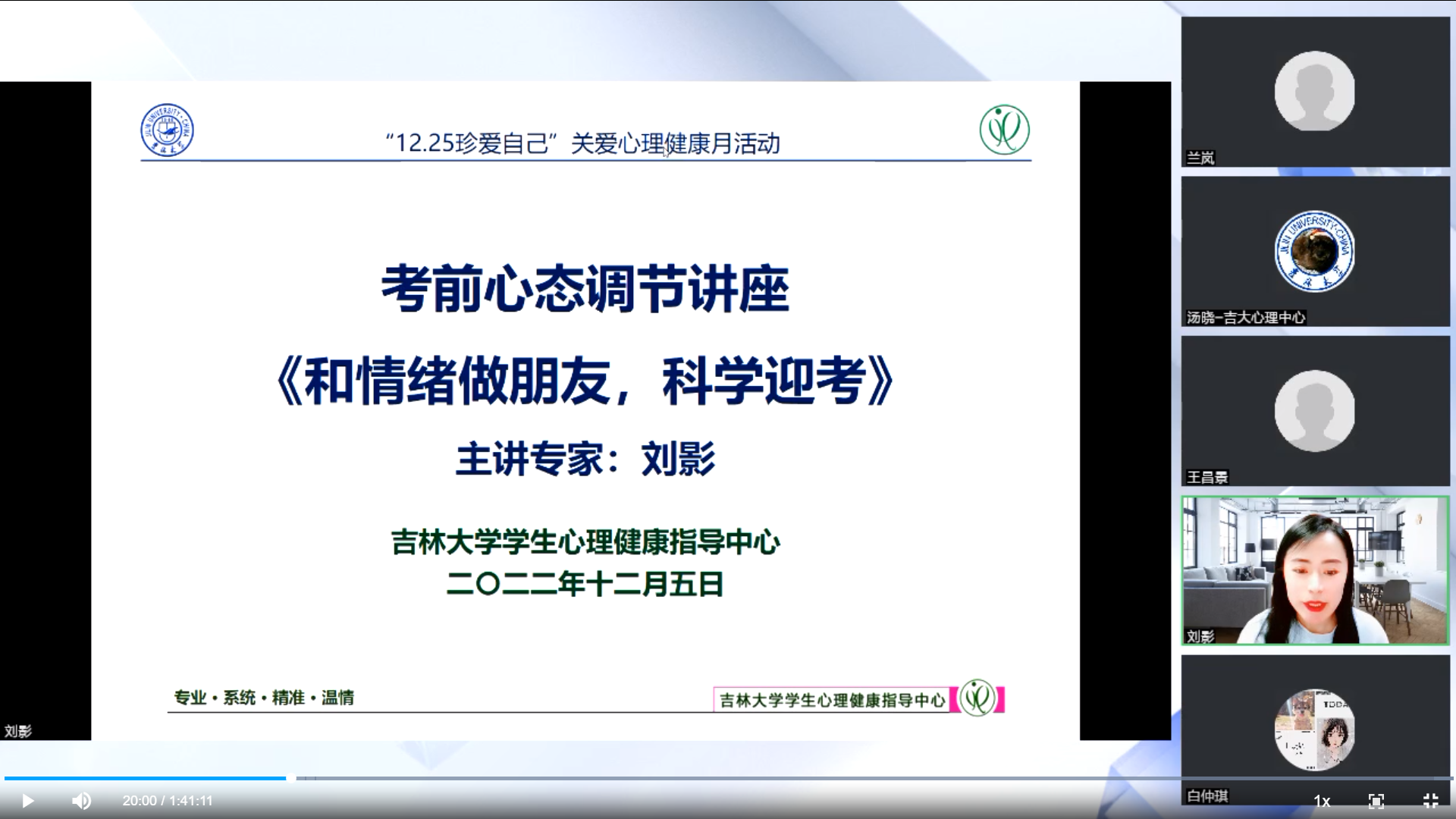 为帮助研究生提升心理健康素质,缓解科研、就业等心理压力,调节情绪,调整心态,规划生活。12月5日,学院组织全体研究生以线上直播+录播的方式观看学习best365官方网站登录入口学生心理健康指导中心开展的考研求职心理调适讲座和考前心态调节讲座。