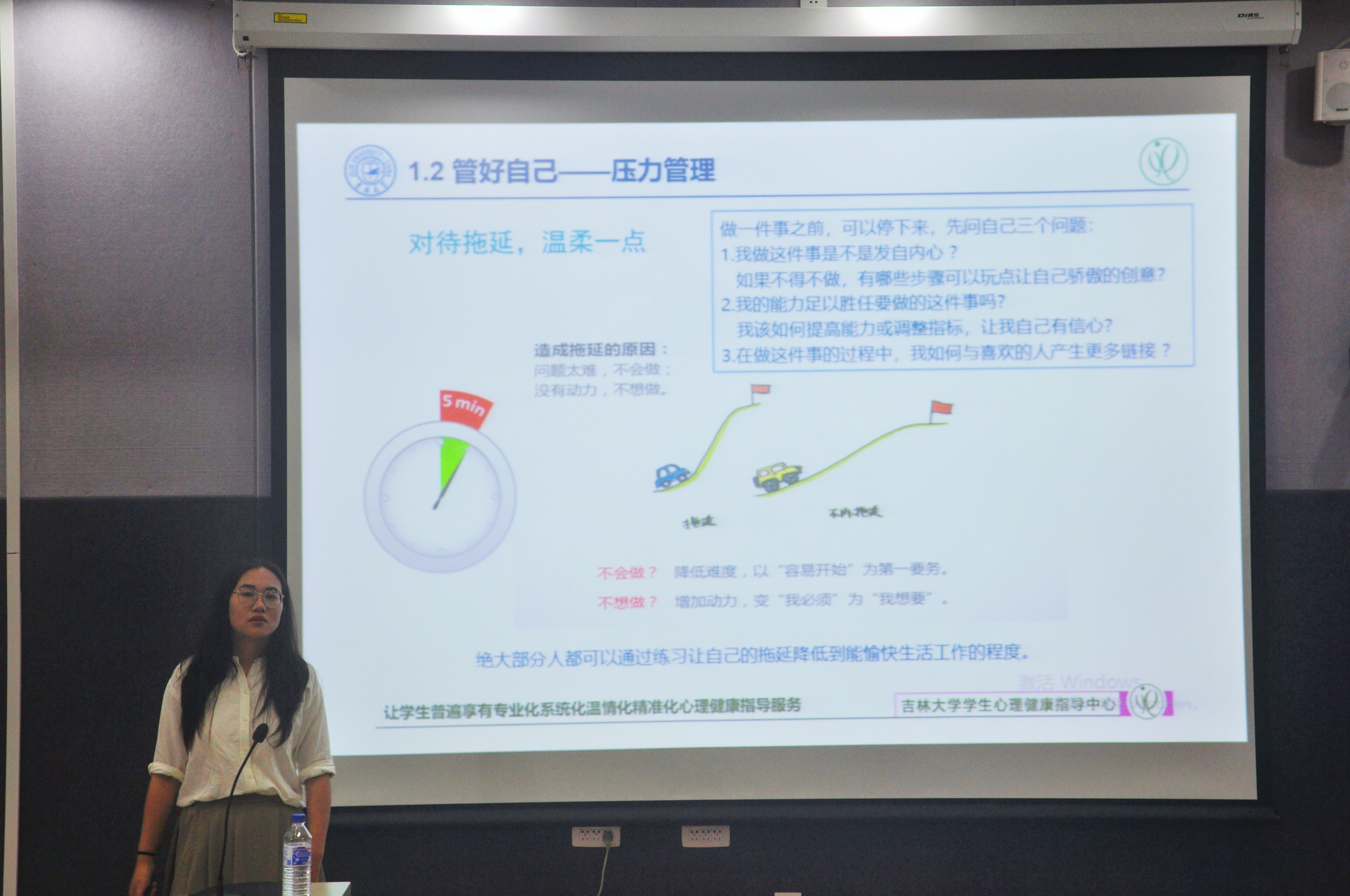 随后,张老师围绕心理健康知识的宣传普及、研究生心理健康的影响因素、增进心理健康的策略、学校的心理健康指导服务等内容,从“管理好自己”、“利用好资源”两个方面展开,强调了目标管理、压力管理和时间管理的重要性和意义,给出了如何利用知识资源、人际资源和专业资源的宝贵建议。最后,张老师呼吁同学们在遇到难以解决的心理问题时,应主动寻求帮助,借助专业的力量,best365官方网站登录入口学生心理健康指导中心的大门永远向同学们敞开。