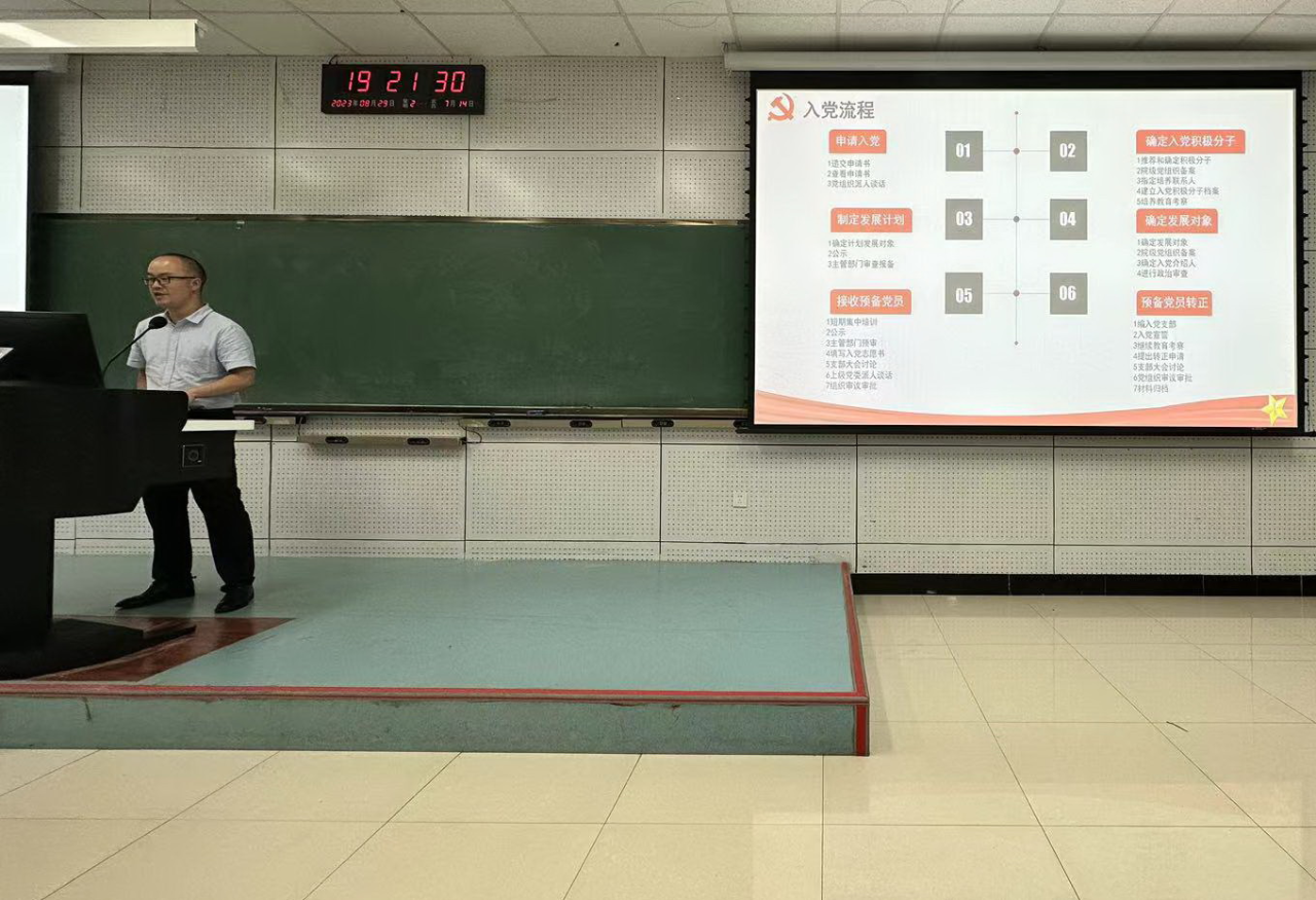 为提高新生入党积极性,端正其入党动机,8月29日晚上7点,best365官方网站登录入口在李四光楼104教室为全体2023级本科生开展入党教育专题讲座。此次讲座由学院学生工作办公室主任、党务秘书(兼)、2023级辅导员杨凯凯主讲。