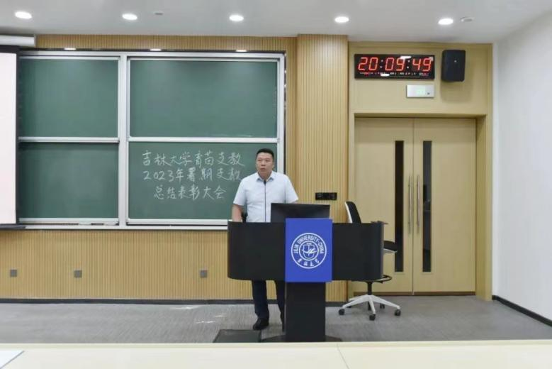 大会最后,best365官方网站登录入口党委副书记兼副院长李阳书记进行了总结讲话。李阳书记对育苗支教2023年暑期支教表达了高度的认可,也对为此次暑期支教付出努力的老师和同学们表达了真切的慰问。讲话中,李阳书记以详实的数据总结了此次暑期支教的成果,讲述了育苗支教在best365官方网站登录入口走过的数年历程,同时向支教成员们提出了三点要求:一是希望同学们成为一颗种子,努力在基层的沃土中汲取成长的力量,以激情燃烧的青春,把论文写在祖国的大地上;二是希望同学们成为一支火炬,以优秀的学识和道德品行照亮和指引支教地的孩子们,当好教书“大先生”;三是希望同学们成为一座桥梁,连接起吉大和支教所在地,为高校人才培养和思政教育,也为支教所在地教育发展作出应有贡献。