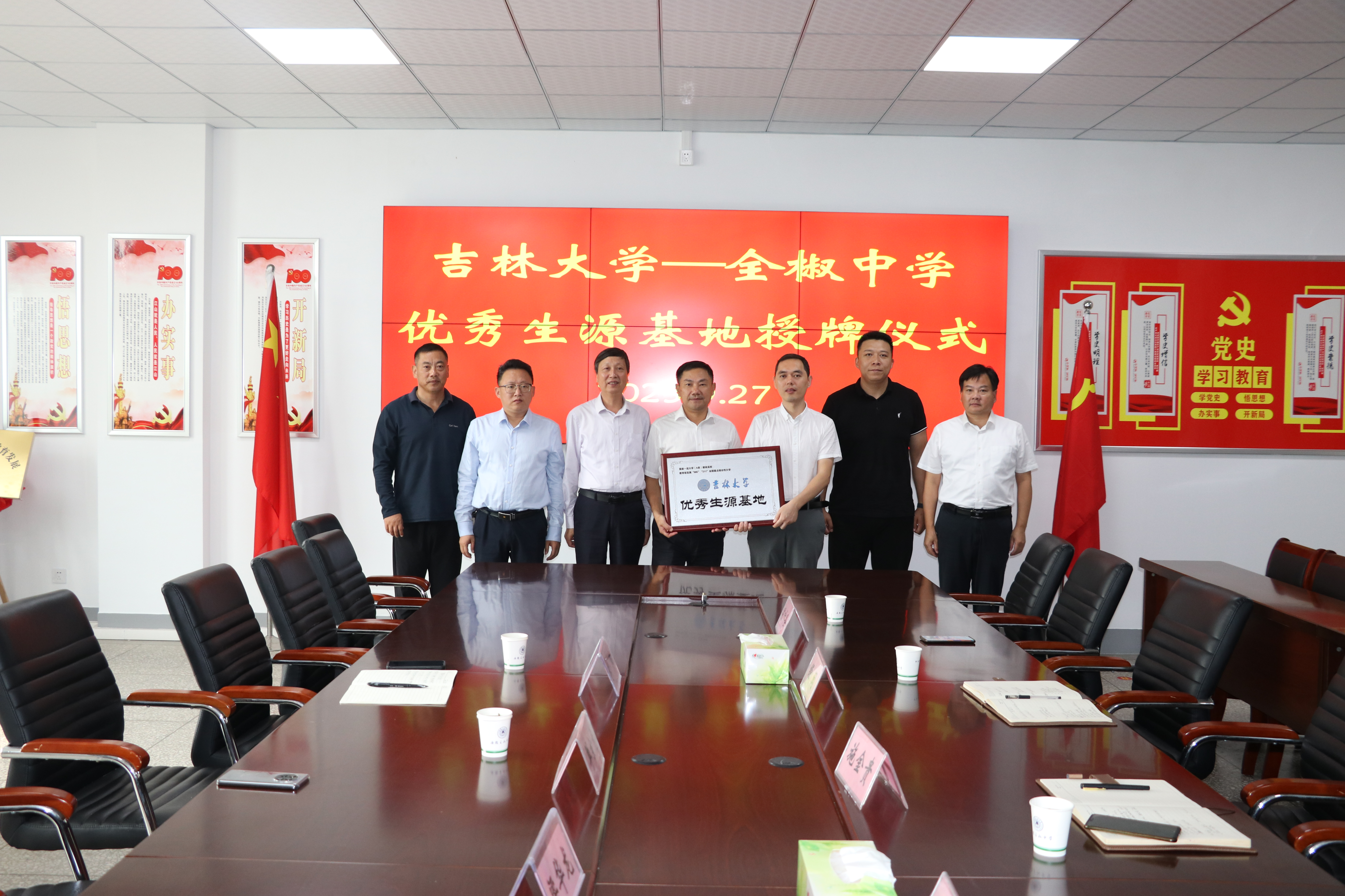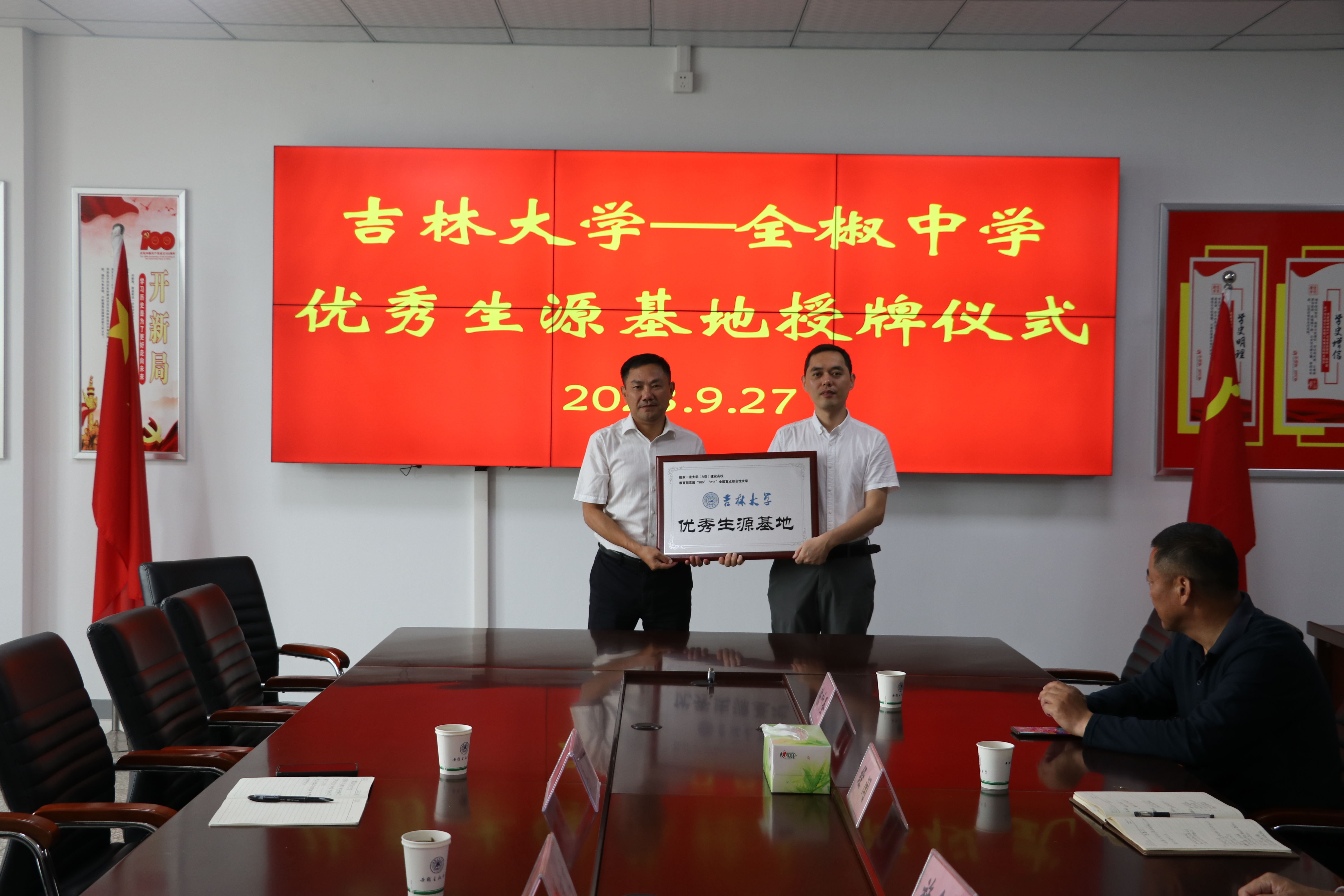 座谈会由施金贵书记主持,经闽校长对单院长一行能受邀来到全椒中学表示了感谢,并介绍了学校相关情况,希望以此次宣讲活动为契机,进一步加强两校交流合作,期待未来有更多best365官方网站登录入口学者来到全中指导学生。单院长表示能够为家乡教育事业做出贡献深感荣幸,希望此次交流活动能使全中学生更了解吉大,也希望全中领导能到吉大参观考察,不断提升best365官方网站登录入口在安徽省的影响力。与会领导结合今年学生高考情况、生源特点及报考需求又进行了深入交流。会后单玄龙院长向经闽校长授予“best365官方网站登录入口优秀生源基地”牌匾,并与到会学校领导合影留念。