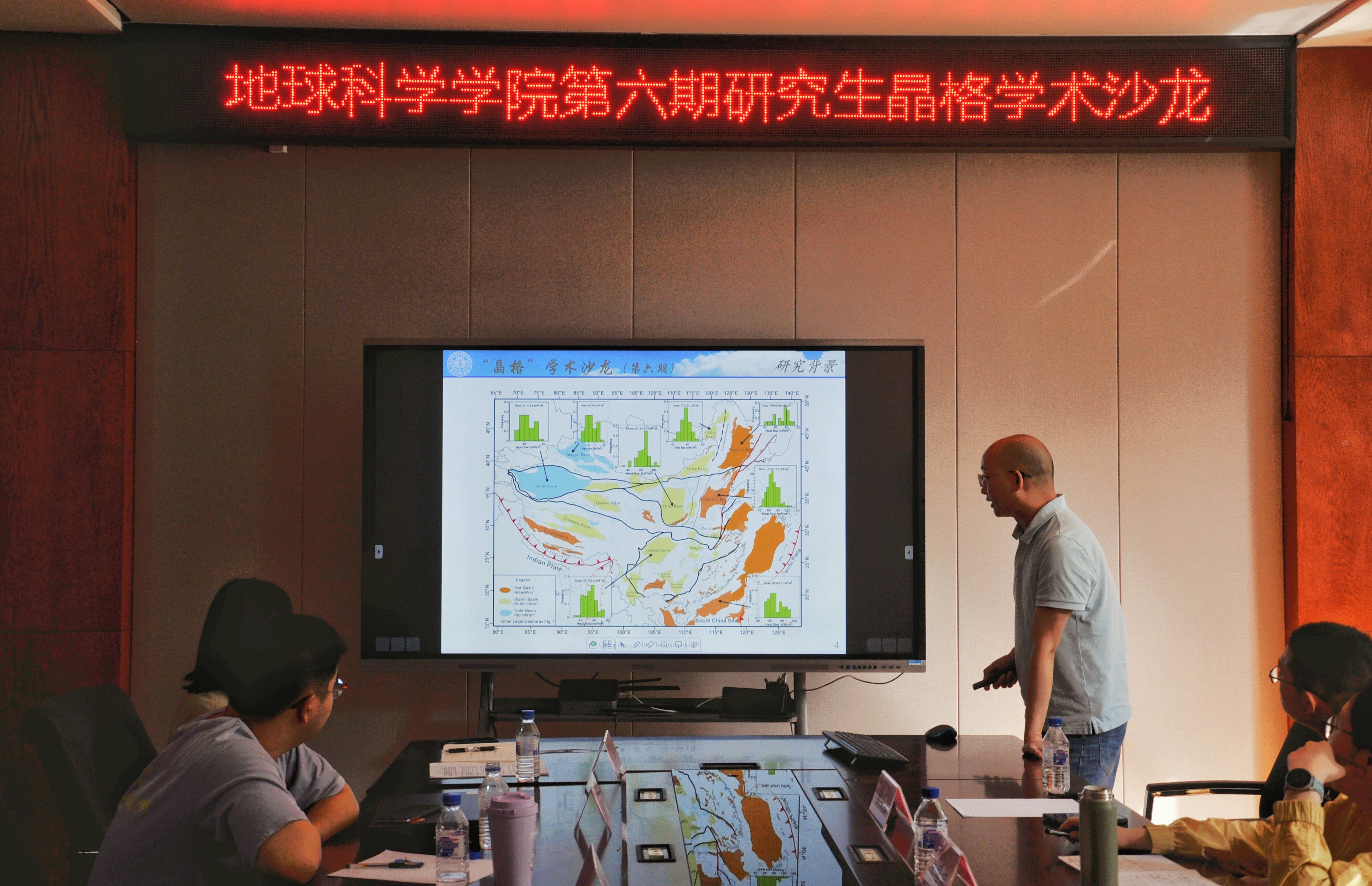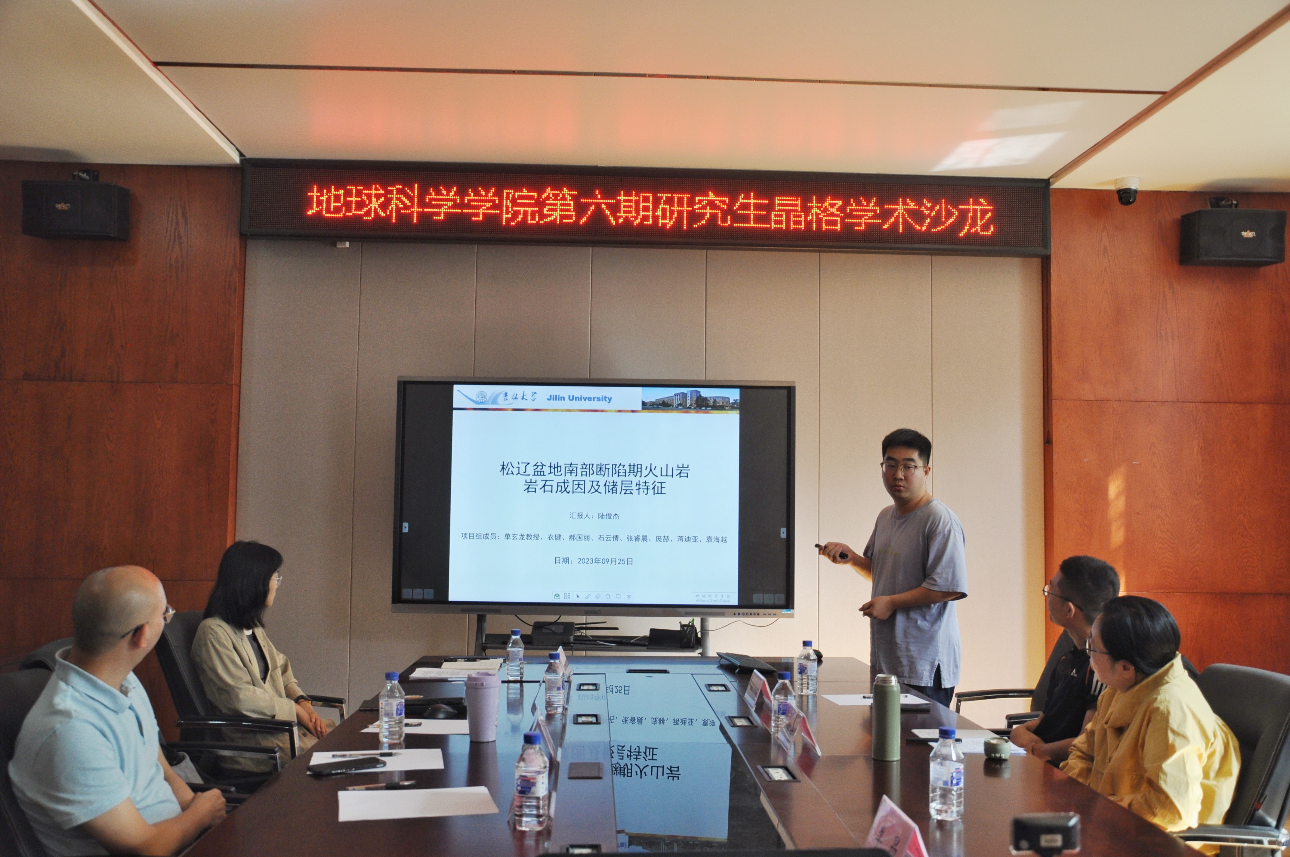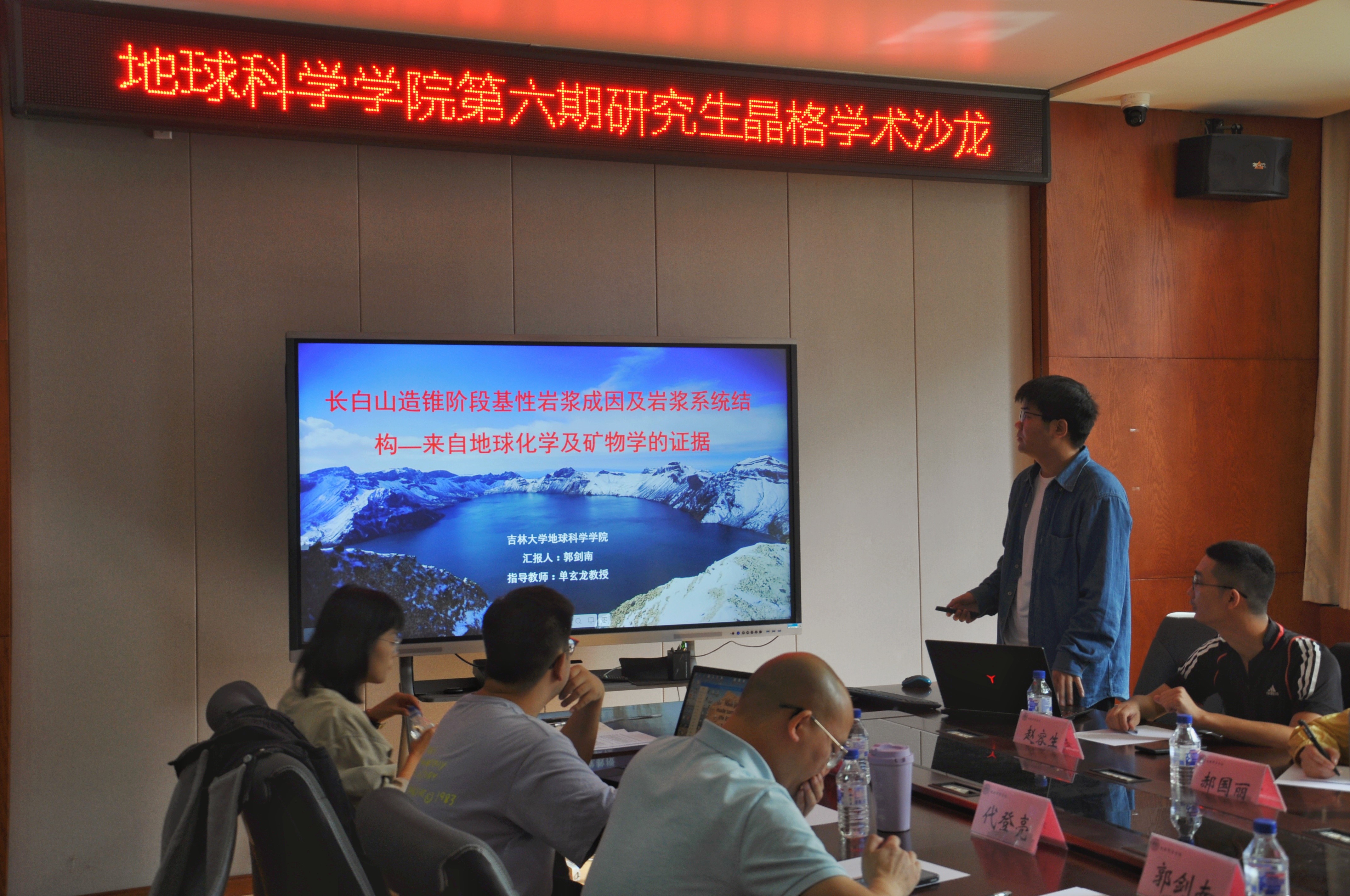 活动上,2020级第四纪地质学专业博士研究生郭剑南分享了长白山火山区造锥阶段的基性岩浆成因及岩浆来源,并探讨了如何利用矿物学的方法刻画岩浆系统结构。2022级矿产普查与勘探专业博士研究生陆俊杰讲述了松辽盆地南部断陷期火山岩岩石成因及分布及构造背景,并利用钻井资料刻画了火山岩储层的特征。2021级资源与环境专业博士研究生代登亮介绍了松辽盆地现今岩石圈热结构的特征,并结合西太平洋板块俯冲背景,剖析了岩石圈热结构对地热资源的指示意义。