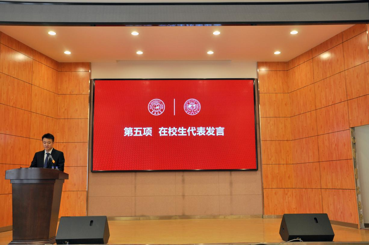 随后,2023级地质学专业硕士研究生张冬卓见和2021级土地资源管理专业博士研究生商屹分别代表新生和在校生发言。他们鼓励同学们努力在实干中经风雨、受历练、增才干,传承“三光荣”精神,赓续地科薪火。