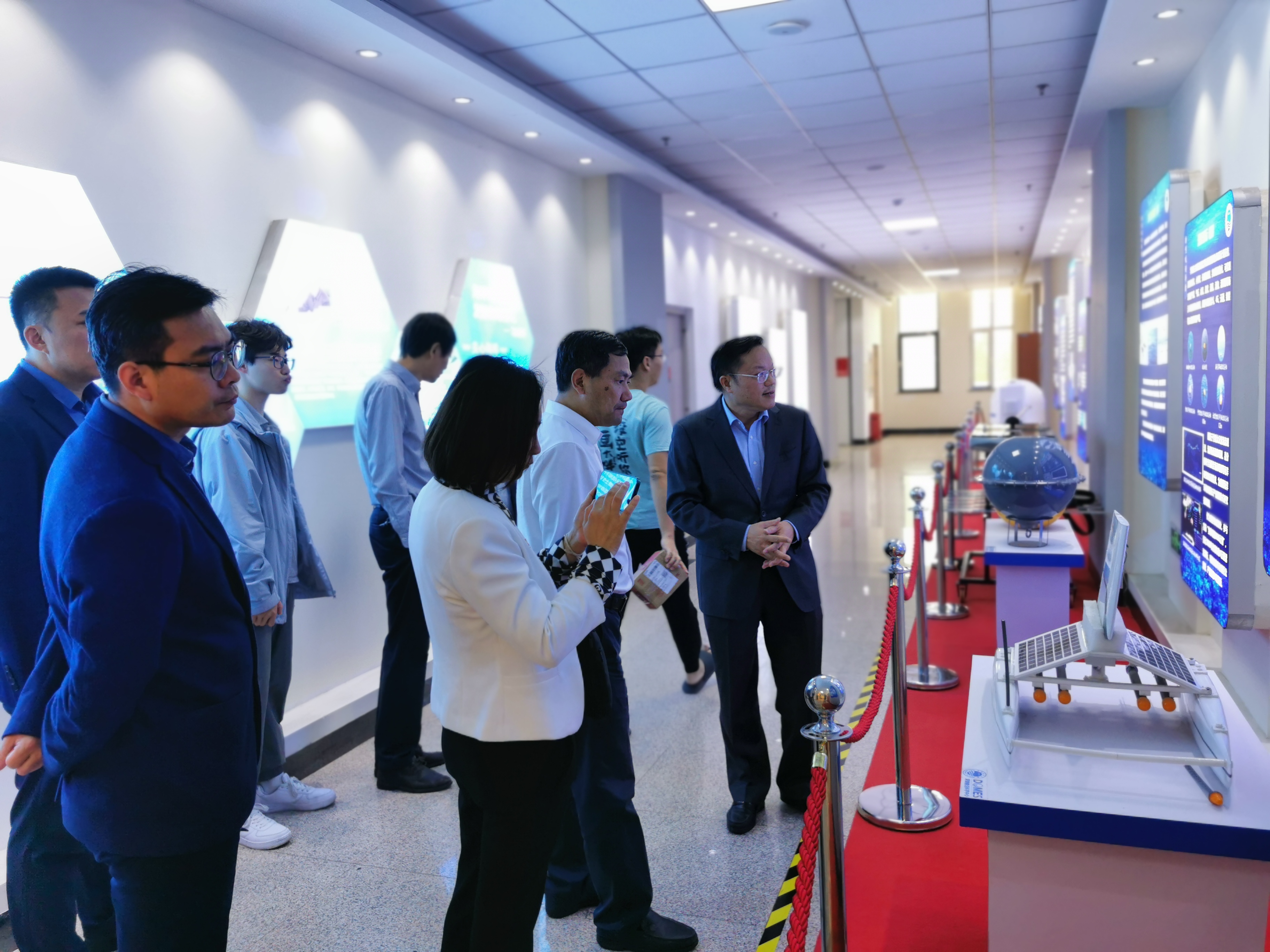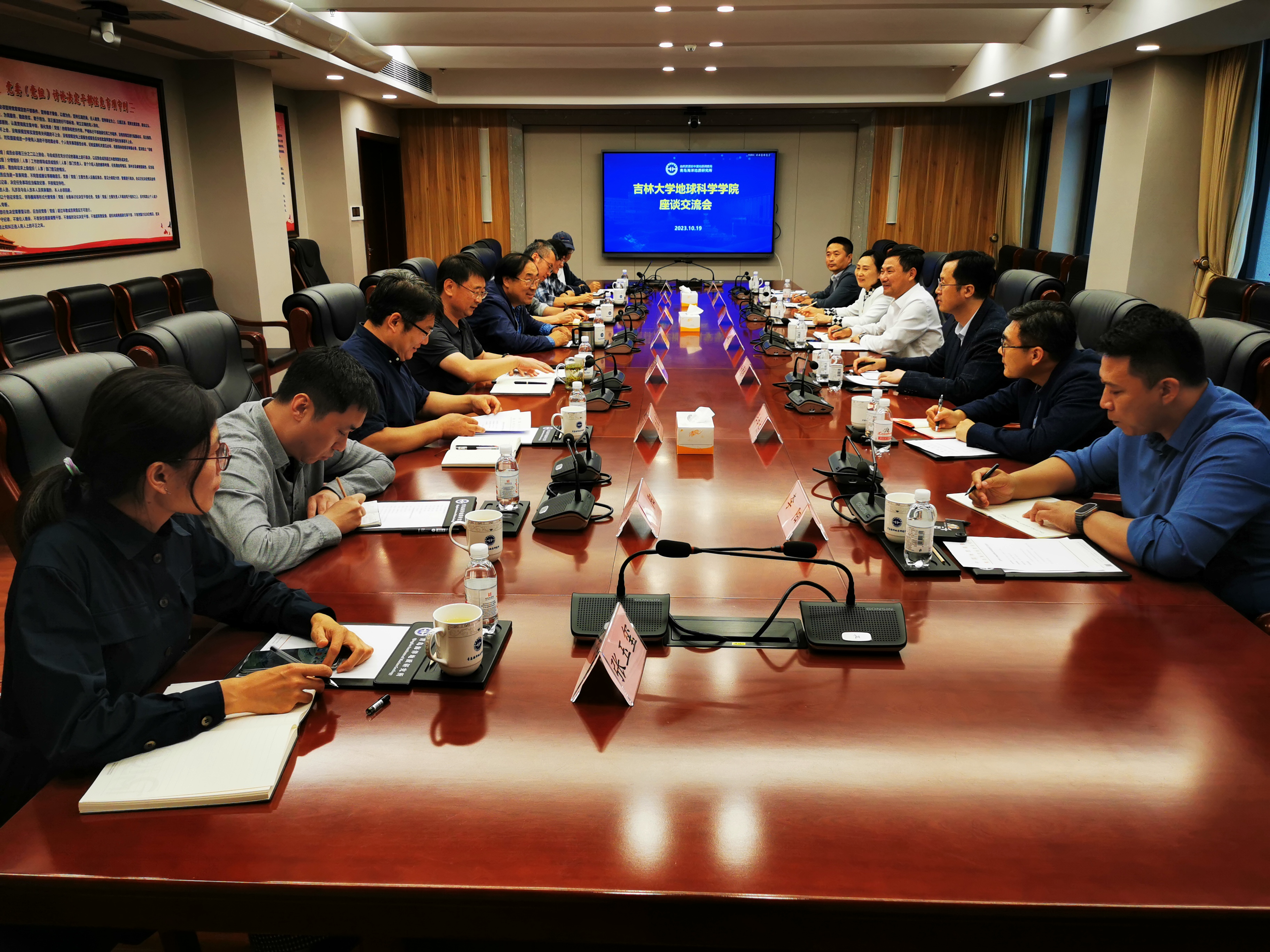 10月19日下午,考察团赴中国地质调查局青岛海洋地质研究所开展合作交流。首先,考察团参观了海洋地质科技馆、天然气水合物实验室、海洋地质样品库和码头。随后,贵所党委书记赵洪伟主持会议交流,人事教育处白凤龙处长、单玄龙院长分别介绍了双方的基本情况。随后双方在研究生联合培养与导师聘任、选拔优秀本科生参加实习营、科研合作等方面开展了深入交流,双方希望通过整合各自核心优势,进一步拓展产学研教融合空间。贵所副总工程师杨慧良、办公室主任姚长新、科学技术处处长杨金玉、海岸带室研究员高茂生、技术室高级工程师李阳、科学技术处主管张玉玺参加了交流合作座谈会活动。