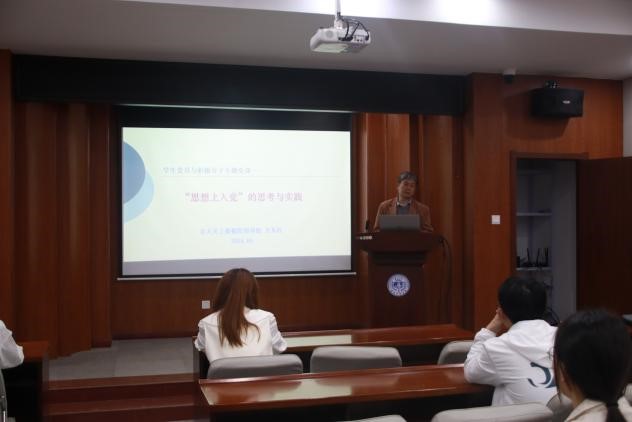 方老师还通过三个思想汇报范例进一步阐述了“思想上入党”现实意义和重要作用,强调真正从思想上入党就是要解决“为什么”和“怎么做”的问题,并提出四点努力建议,即:从历史足迹中尤其是党史中寻求证明、探寻依据,建立正确的历史观;从现实生活中了解情况、认清形势,拥有正确的现实观;从未来发展中看清趋势、明晰需要,把握正确的发展观;基于“思想上入党”的基本要求,脚踏实地,不断提升自身素养。最后,方老师强调,学生党员要了解时事、关注发展;要善于研究历史,观今宜鉴古,学会将过去与现在、现在与将来联系起来;要学会理论与实际相结合,让成长之路贯穿于中华民族伟大复兴的过程之中。
