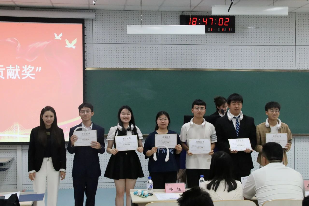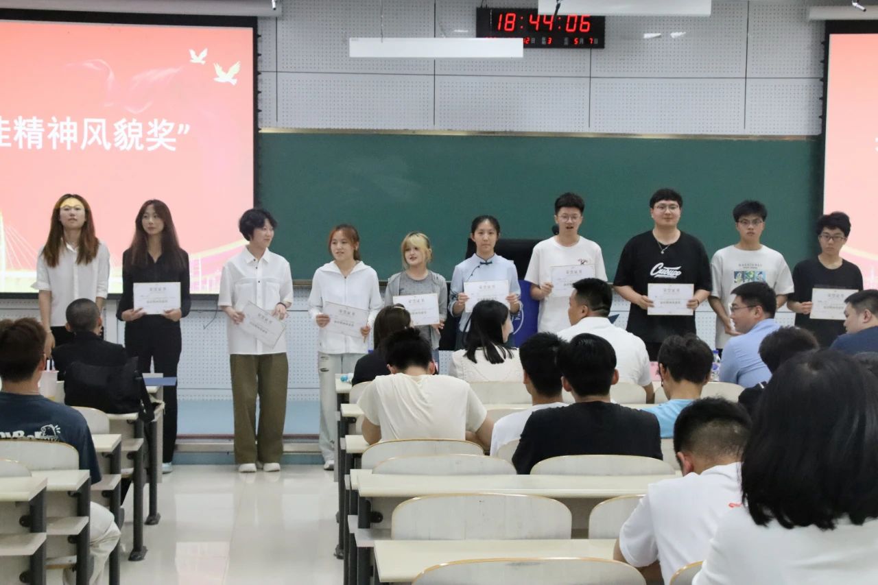 由李阳老师、韩旭老师、纪核鑫老师、赵晶老师分别为获得“优秀运动员”、“突出贡献奖”、“最美志愿者”、“最佳精神风貌奖”奖项的获奖同学进行颁奖。