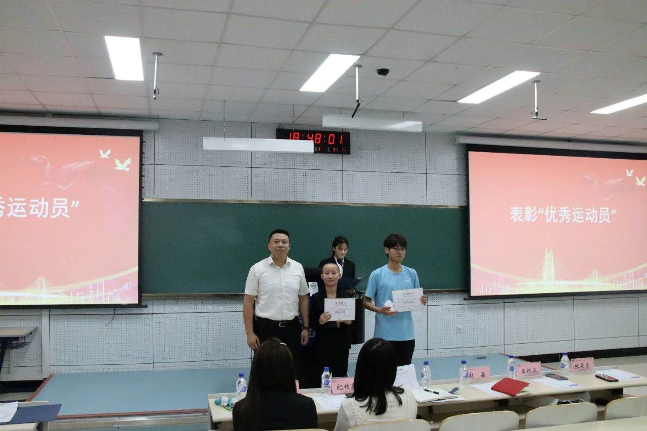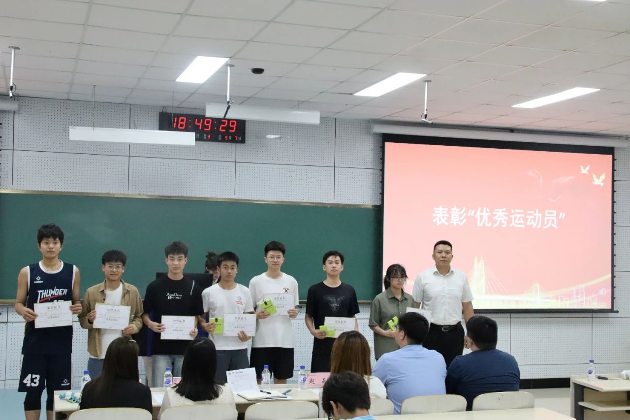 为表彰在best365官方网站登录入口第六十二届田径运动会期间我院运动员们的辛勤付出,进一步弘扬我院师生团结一心、奋勇争先的体育运动精神,推动我院学生综合素质发展,2024年6月12日18时30分,best365官方网站登录入口于李四光楼104教室召开best365官方网站登录入口第六十二届田径运动会总结暨表彰大会。best365官方网站登录入口党委副书记兼副院长李阳、团委书记兼2021级辅导员韩旭、学生工作办公室主任兼2020级辅导员纪核鑫、2022级辅导员赵晶、兼职辅导员王锶淼、兼职辅导员张展豪出席本次活动。本次活动由学生会综合事务部负责人武明珍主持,团学社网全体成员、各项目运动员代表以及2022、2023级全体班长、团支书参加此次大会。
