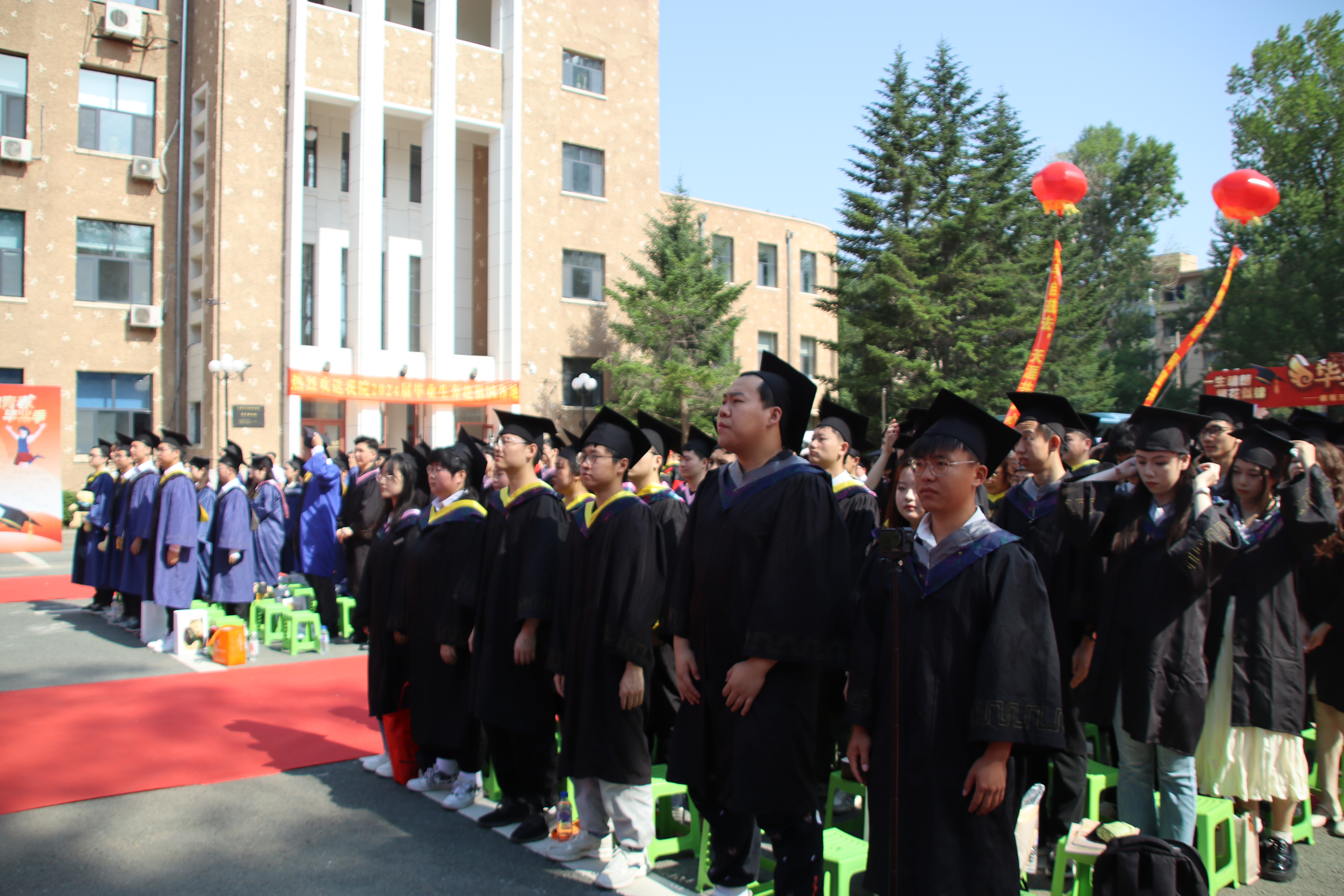 上午8时30分,全体毕业生身着学位服,整齐起立,摘下学位帽,同声高唱国歌。在庄严肃穆的国歌声中2024年毕业典礼正式拉开序幕。