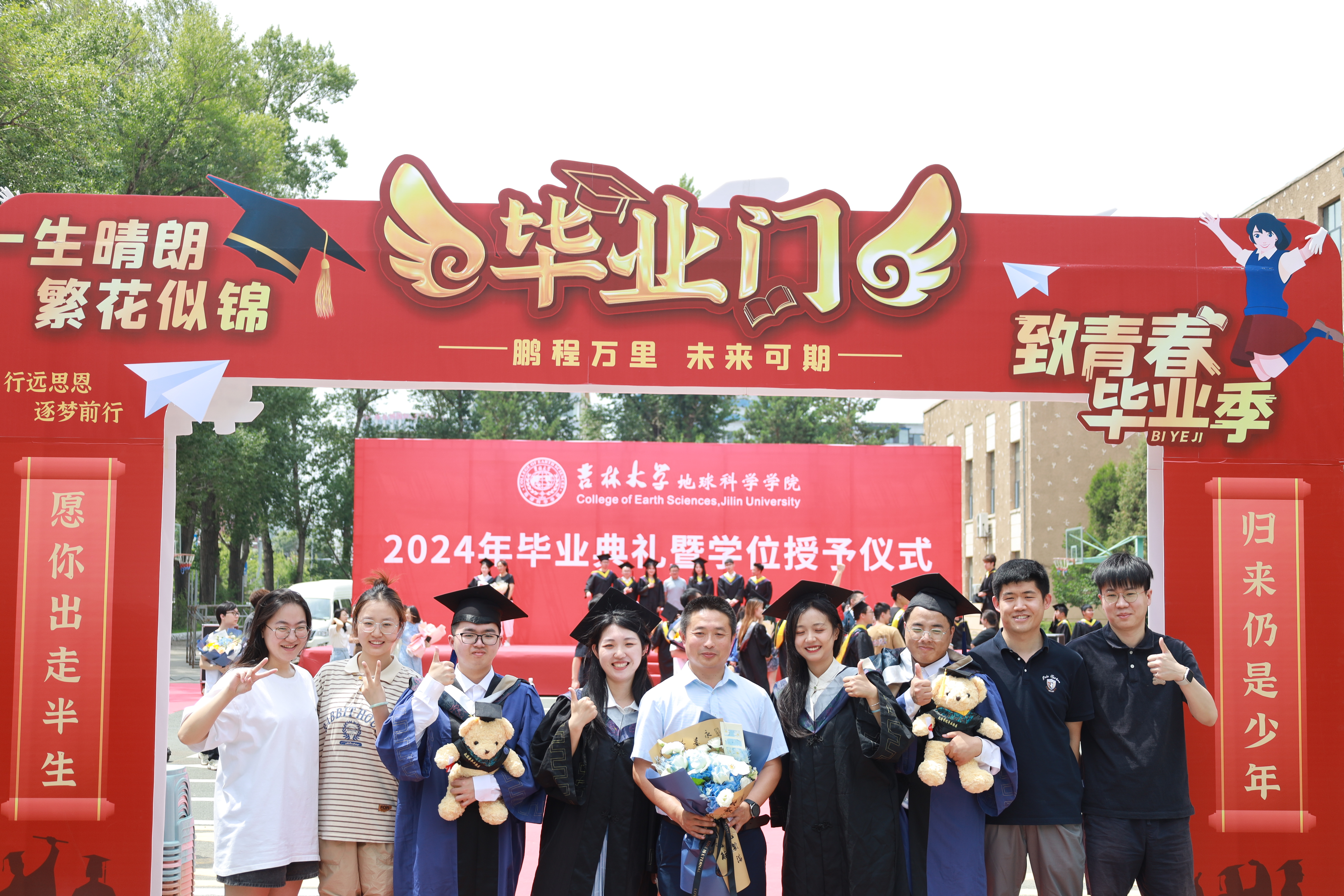 在离别的拥抱之后,同学们将如同蒲公英般分散至各方。尽管宇宙无垠,生活无限,同学们仍需以“人比山高、脚比路长”的精神赶赴下一场山海,谱写新一篇华章。毕业不是终点,而是一个崭新的起点。在吉大这片热土上,同学们收获了知识、友情和成长,或许未来的路途充满荆棘与挑战,但只要心中有信念,脚下有力量,便能跨越山海,抵达远方。