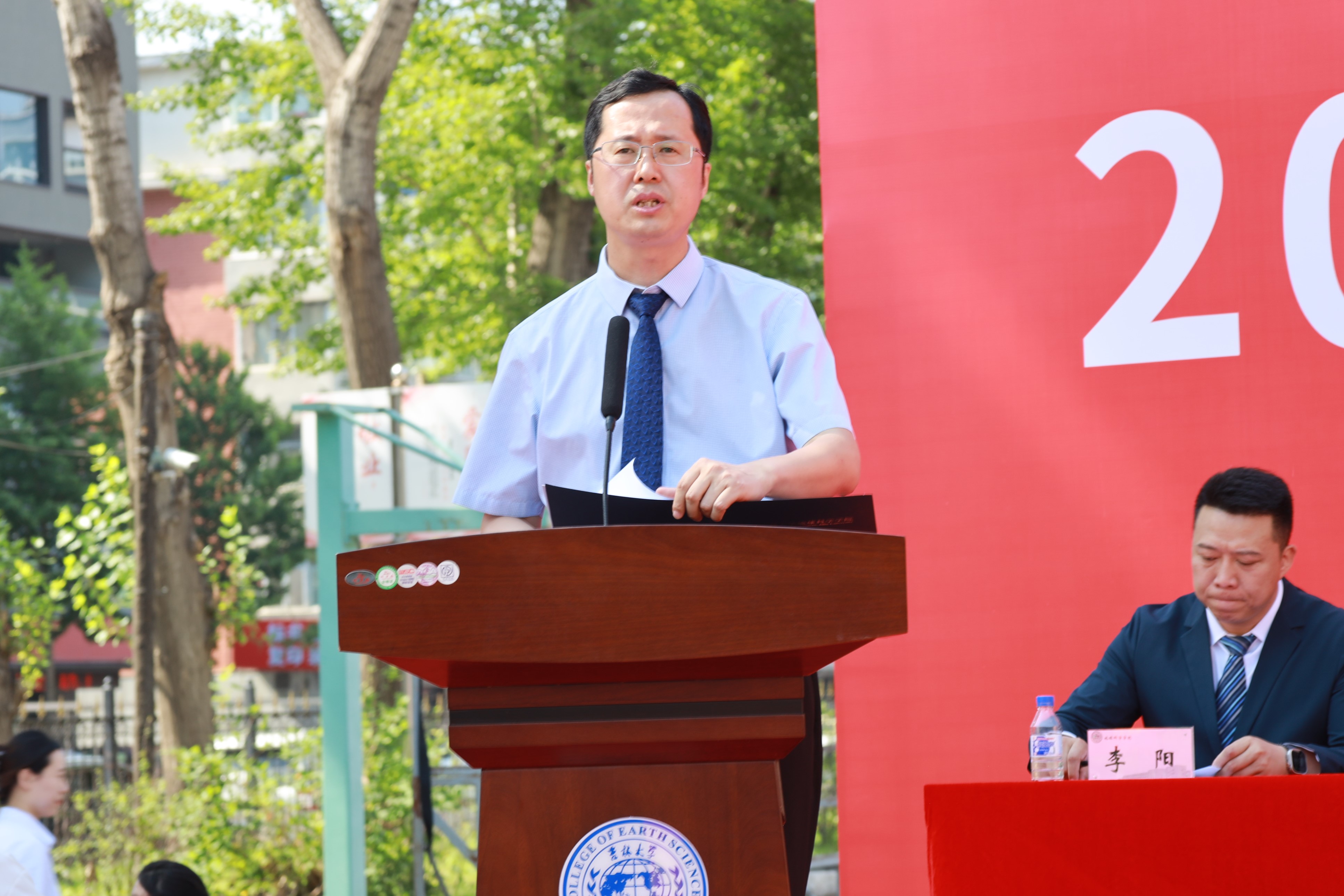 在院长讲话环节中,单玄龙院长对所有毕业生致以真挚的祝福。他指出,2024届毕业生是与伟大时代“双向奔赴”的毕业生,他为同学们的成长感到自豪。在毕业之际,他叮嘱同学们要矢志不渝,坚定地学人的信念;要勤学不辍,彰显地学人的品质;要终身求索,传承地学人的追求。他希望同学们牢记习近平总书记的谆谆嘱托,积极投身到祖国建设和民族复兴的伟大实践中,行稳致远,踔厉奋进,在奋斗中释放青春激情、追逐青春理想。最后,单玄龙院长表示,鸽子楼永远是同学们的温暖港湾、坚强后盾、精神家园,祝愿各位毕业生前途似海,万事胜意。
