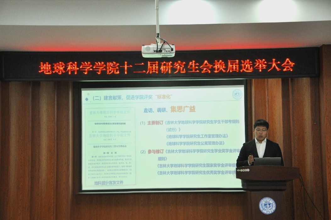 会议伊始,第十一届研究生会主席胡慧明代表主席团对过去一年的工作进行了总结,重点回顾了在学术活动组织、校园文化建设、研会改革创新等方面取得的成绩,并对全体研会成员的辛勤付出表示感谢。他表示希望下一届研究生会成员继续发扬优良传统,开拓创新,竭诚为学院研究生群体服务,不断推动学院学生工作的深入发展。
