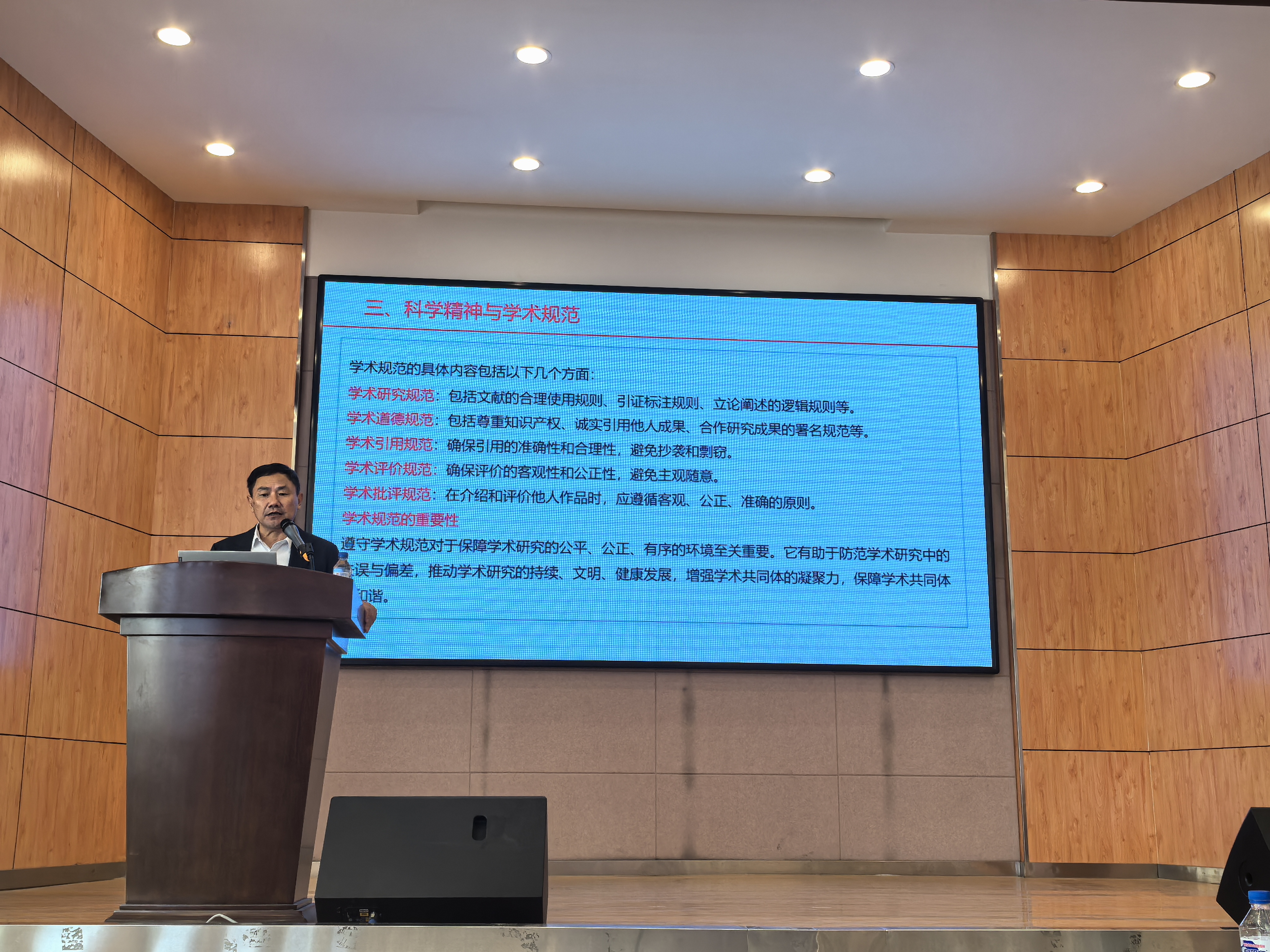 活动伊始,单玄龙院长向同学们介绍了我国在国家发展中对教育、科技和人才的重视,强调了这三者在推动社会主义现代化建设中的核心作用。“新时代地球科学肩负着重要使命,地质工作将大有可为”,单玄龙院长从推动绿色发展、促进人与自然和谐共生、加快构建新发展格局、着力推动高质量发展等方面回答了“地学何为”这个问题,鼓励学生们利用科技手段探索新知识、新技术和新方法,推动科技创新,为社会带来变革。同时为研究生讲解了科学精神和科学规范内涵,强调他们是在研究生阶段高质量科学研究的重要保障。