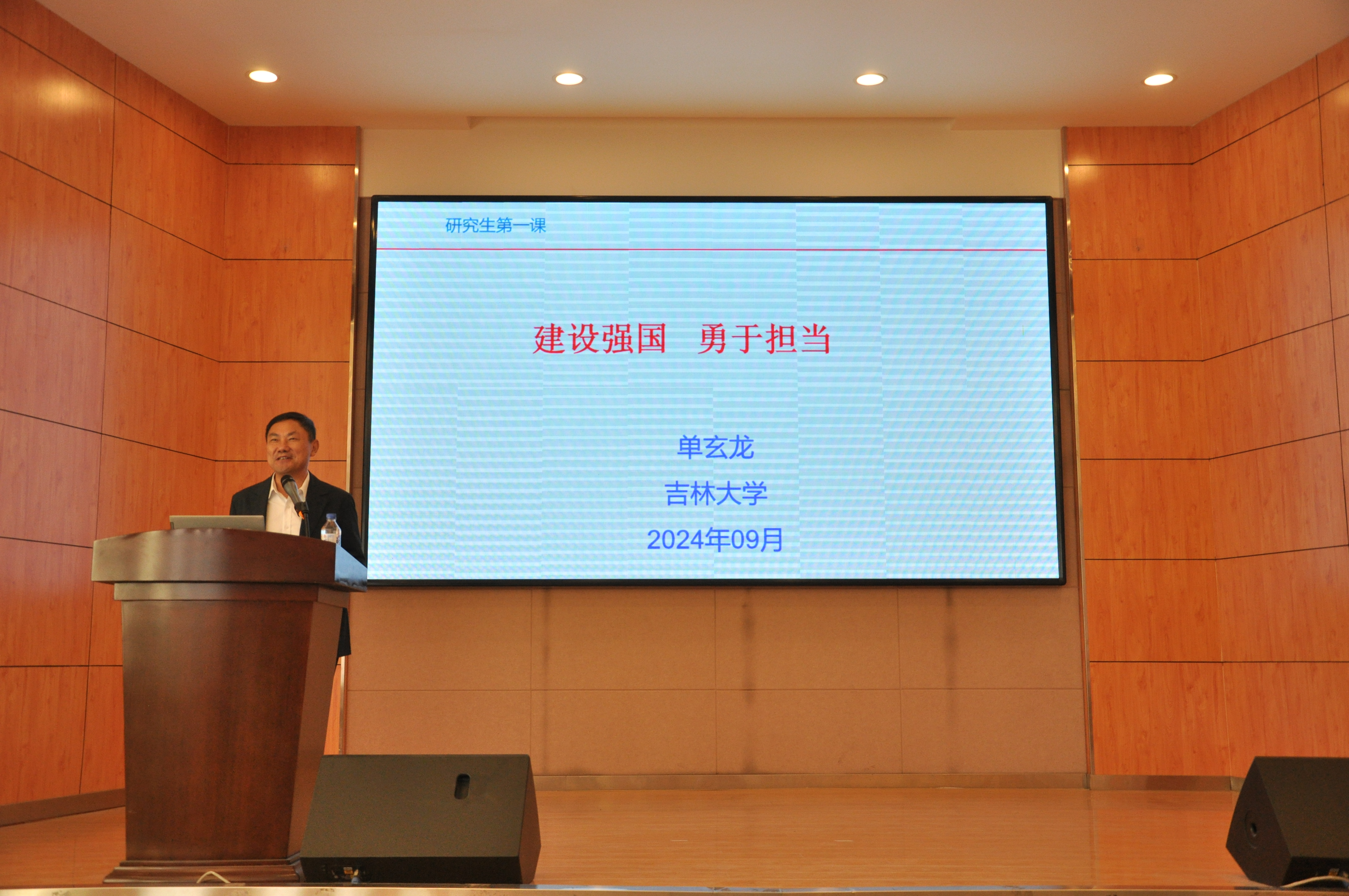 为贯彻落实立德树人的根本任务,帮助新生在研究生阶段建立正确的价值观念,为未来的学术研究和社会生活奠定坚实的基础。9月27日上午,best365官方网站登录入口院长单玄龙在朝阳校区图书馆四楼报告厅为学院2024级研究生讲授了以“建设强国 勇于担当”为主题的“开学第一课”。活动由学院党委副书记马旭主持。