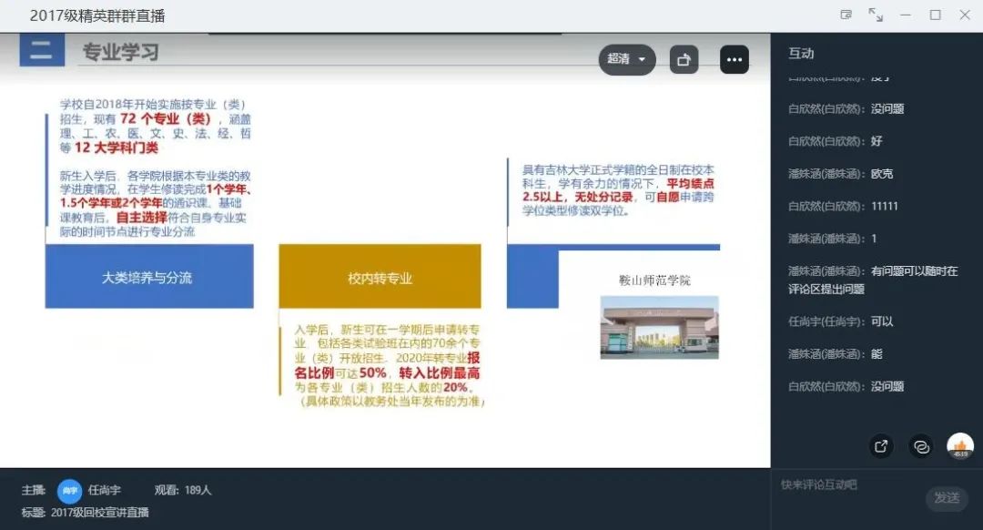 队员们介绍各自学校的专业学习、转专业等情况