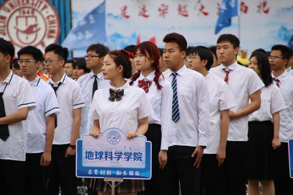 大会开始,在护旗手的拥护下,鲜红的五星红旗缓缓进入场地,仪仗队队员们步履铿锵、整齐划一。紧接着是裁判员、运动员方队。我院方队运动员白衣黑裤,昂首阔步,彰显了地质人勤劳朴实的精神,响亮的口号喊出了地质人不畏艰险、脚比路长的气魄。