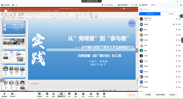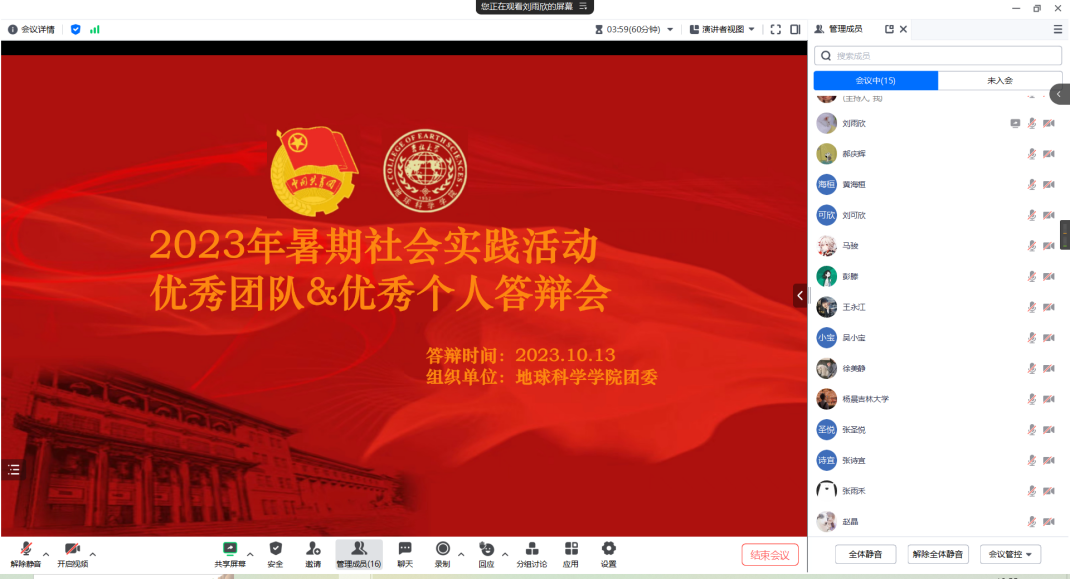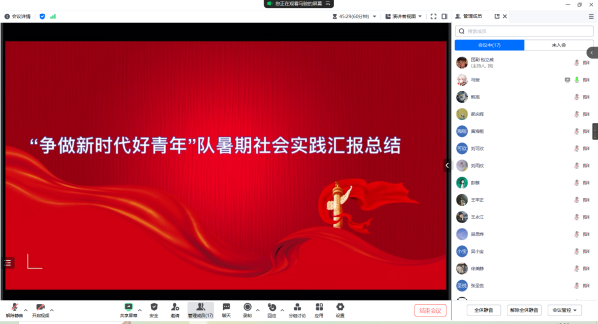 2023年10月14日晚上七点,best365官方网站登录入口2023年暑期社会实践评比大会顺利召开。本次会议采用线上腾讯会议的形式举行,出席会议的有best365官方网站登录入口学院团委书记兼2021级辅导员韩旭老师、2022级辅导员赵晶老师、学院第二十三届学生组织主要负责人以及参评同学参会。