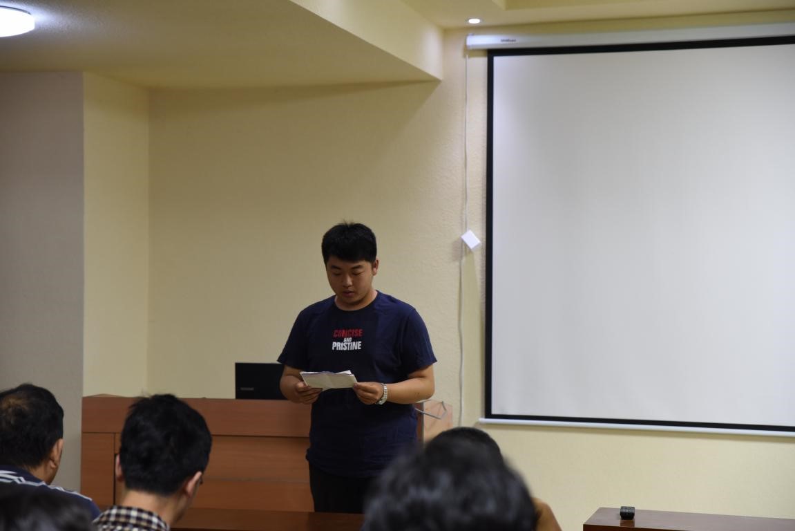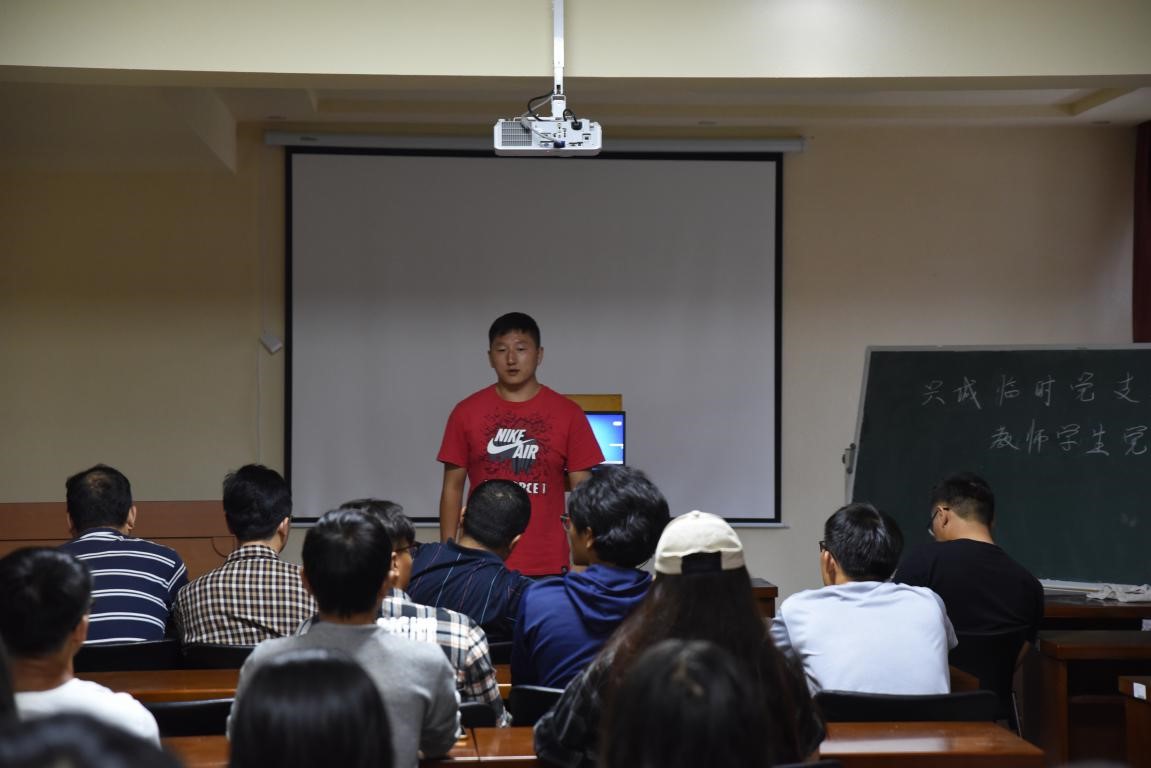 随后,由四名学生预备党员进行思想汇报。预备党员学生代表是地科16级4班吴浩然,1班田哲源,7班冯杨,7班赵强依次进行思想汇报。汇报主要从学生自己出发,浅谈近段时间的自身情况,表达自己身为预备党员要起到带头作用,也应该将自己学到的地质专业知识运用到实际生活中,由专业实习联系到自己,实习的过程其实是对自己世界观的培养。作为预备党员,最应该的就是将自己做好,将学习学好,保证野外卫生等方方面面的小事更能证明作为学生党员的觉悟。