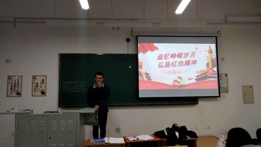 为了推进爱国主义教育,提高同学们的社会责任感和历史使命感,让同学们更好地了解历史,从而缅怀先烈,致敬先烈,怀揣梦想,坚定理想信念并为之不懈努力追求,2018年12月11日晚6点best365官方网站登录入口18级三班全体同学于李四光楼309教室参加了以“追忆峥嵘岁月,弘扬红色精神”为主题的观影活动。本次活动由三班团支书主持,得到了同学们的热烈反响。活动中同学们都积极配合,热情高涨,使得本次活动圆满结束。